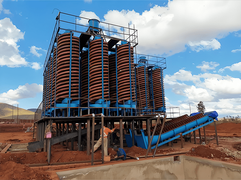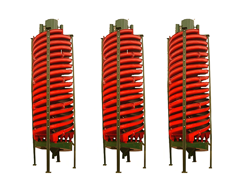 螺旋溜槽是一種重選設(shè)備,利用礦漿在螺旋回轉(zhuǎn)中產(chǎn)生的離心力實現(xiàn)輕重礦物的分選。礦漿通過給礦槽均勻給入,在螺旋槽面上進行分選,尾端閥塊式截取槽將產(chǎn)品按品位分成三種。通過調(diào)節(jié)閥塊位置改變截取寬度,產(chǎn)品集聚斗導(dǎo)出。螺旋溜槽結(jié)構(gòu)簡單,無需動力,適用于細微粒物料選別,具有高回收率和分選準(zhǔn)確的優(yōu)勢。